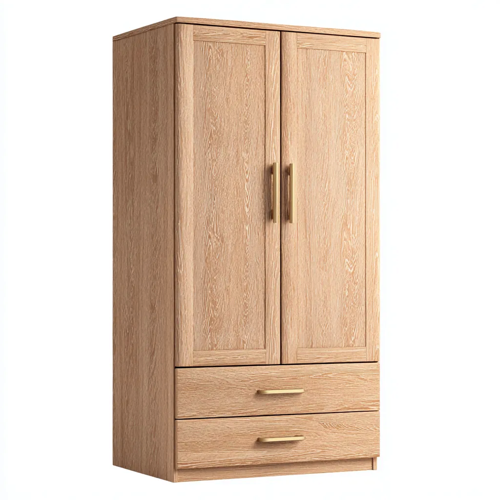 Armadio compatto progettato per camere da letto e ambienti domestici dove è necessario ottimizzare lo spazio mantenendo un aspetto ordinato e naturale. Il design lineare si integra facilmente in diversi stili di arredamento.
