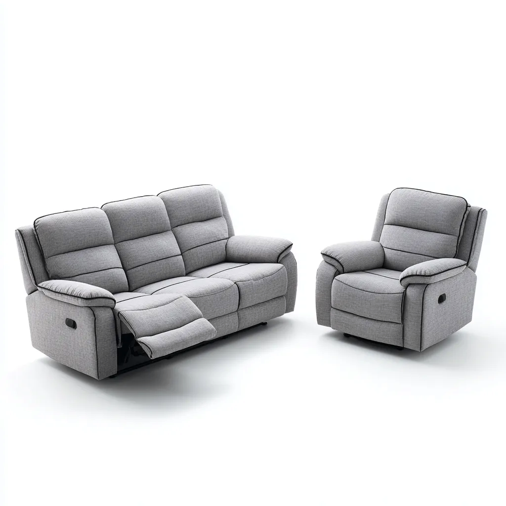 Set divani progettato per offrire comfort e funzionalita nel soggiorno. La combinazione di divano e poltrona crea una zona relax completa, adatta all utilizzo quotidiano in ambienti residenziali.